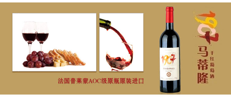 马蒂隆1907 让你健康幸福到老法国马蒂隆1907干红葡萄酒是来自法国西南部产区长寿之乡的经典葡萄酒。马蒂隆1907是一个百年传承的经典葡萄酒品牌。个性鲜明突出,被各国科学家所推崇饮用。马蒂隆1907已经成为全法国人的骄傲。