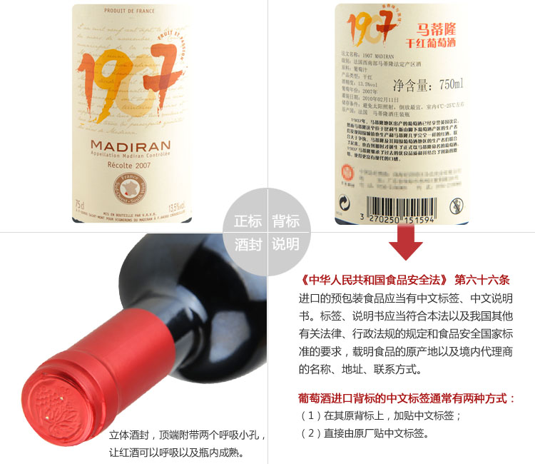 马蒂隆1907 让你健康幸福到老法国马蒂隆1907干红葡萄酒是来自法国西南部产区长寿之乡的经典葡萄酒。马蒂隆1907是一个百年传承的经典葡萄酒品牌。个性鲜明突出,被各国科学家所推崇饮用。马蒂隆1907已经成为全法国人的骄傲。香气浓郁 口感柔和 健康饮用法国马蒂隆1907干红葡萄酒呈现宝石红色的液体,散发着成熟红色水果及香料香味,口感柔和,浓郁的果味(黑樱桃,野生水果)巧妙混合着单宁。